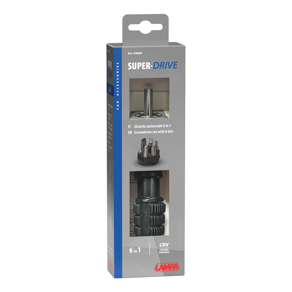 Universalschraubendreher mit 6 auswechselbaren Einsätzen aus Stahl 6 EInsatzhalterung im Griff