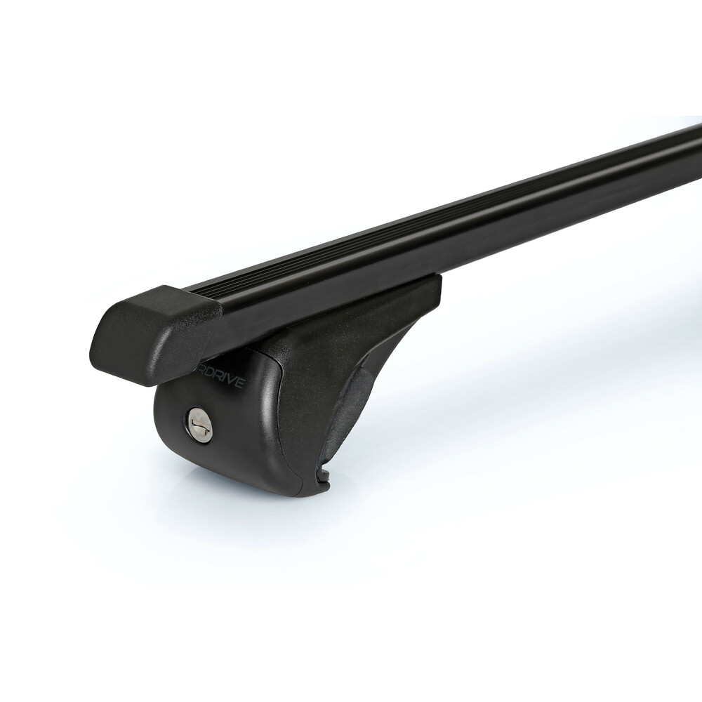 Kit für die Montage von zwei Schienen Quadra auf Fahrzeugen mit Standard-Railing. Sicherheitsschloss mit drei Schlüsseln