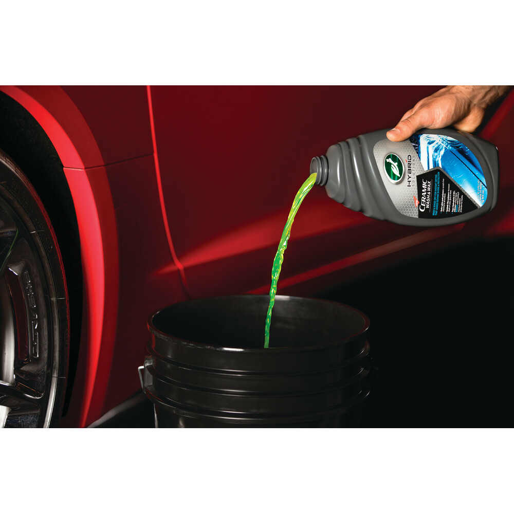 Die Shampoo-Wachs-Produktmischung besitzt einen neutralen pH-Wert, der eine sichere Behandlung aller Außenflächen garantiert, auch derjenigen, auf die vorab eine Keramik-Schutzbeschichtung aufgebracht wurde. Entwickelt wurde das Mittel, um bei einmaliger Anwendung maximale Wasserabweisung zu garantieren. Es kann zusammen mit allen Hybrid Solutions-Produkten verwendet werden und verstärkt den Keramikschutz von Fahrzeuglacken. Die innovative Reinigungsrezeptur hebt den Schmutz vom Lack ab und kapselt ihn ein. Anschließend wird der Schmutz zusammen mit dem Schaum entfernt, wodurch das Waschen keine kratzenden Effekte erzeugt. Das schnelltrocknende Shampoo-Wachs-Gemisch Turtle Wax Shampoo-Cera überrascht auch durch seinen charakteristischen tropischen Geruch.