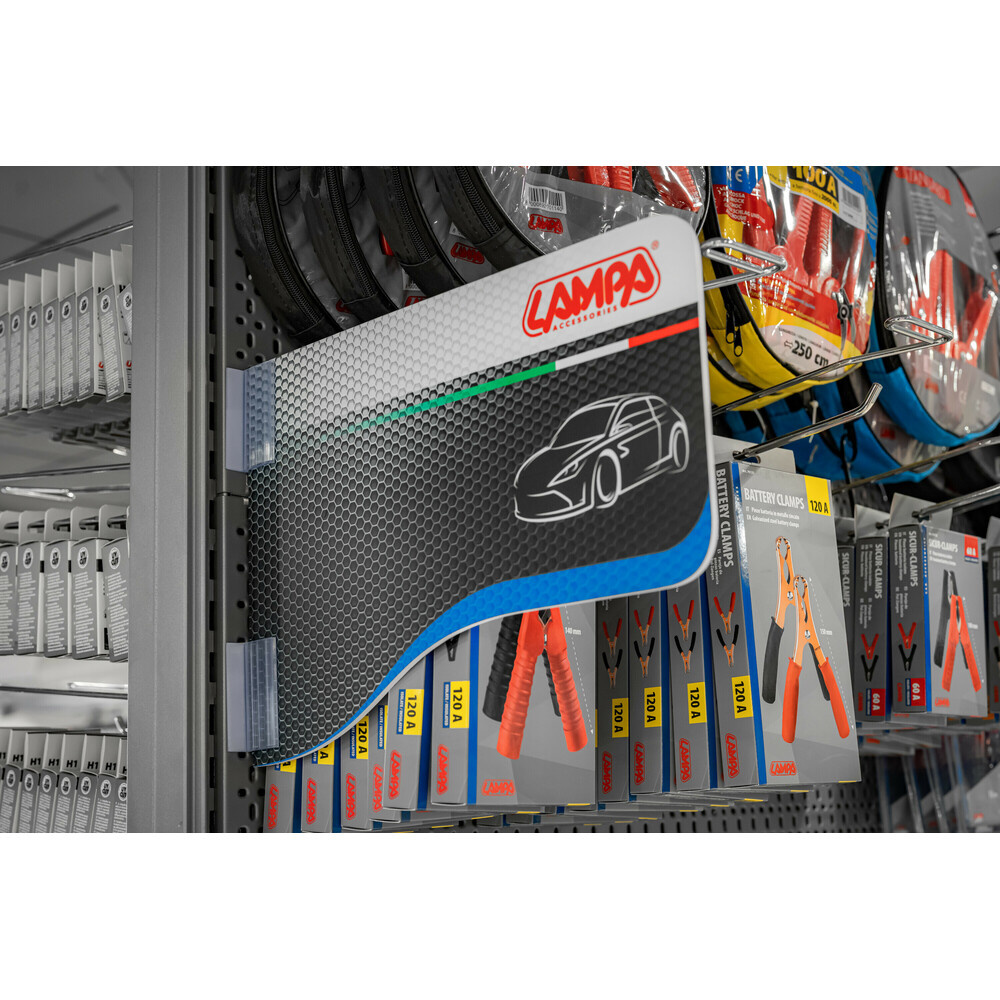Disclaimer: Contents, specifications and availability are subject to changes serving the technical improvement. All brands and products shown on this site are used for illustrative purposes only and are the sole property of their respective owners. No professional relationship exists between the owners of brands and products shown and LAMPA S.p.A. The set-ups and solutions offered and depicted, may not be compliant with the law in some Countries or with traffic circulation. Therefore, the purchaser should verify that their purchases are not against the applicable laws in their Countries, or the provisions on the products they intend to use on their vehicle.