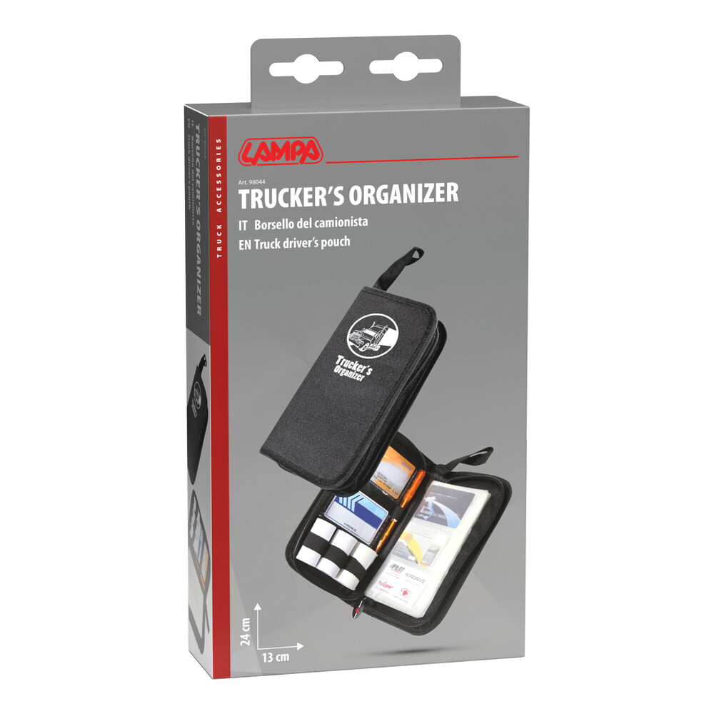 Para tacógrafos, tarjetas de combustible, recibos, notas de gastos, tarjetas para peajes de autopistas... Bolsillos múltiples para archivar hasta 120 informes diarios