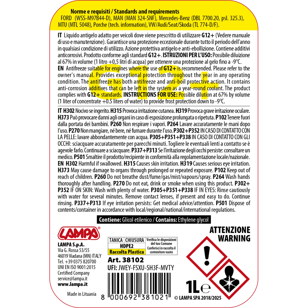 Prêt à l’emploi. Mélangé avec un antigel de haute qualité, il contient des additifs anticorrosifs qui peuvent rester dans le circuit comme liquide de refroidissement même après l’hiver.