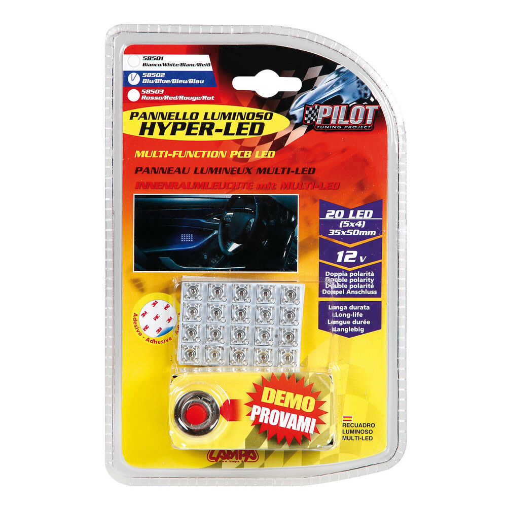 LED à haute intensité, faible absorption électrique, très longue durée. Partie arrière adhésive. Emballage avec fonction « Demo »