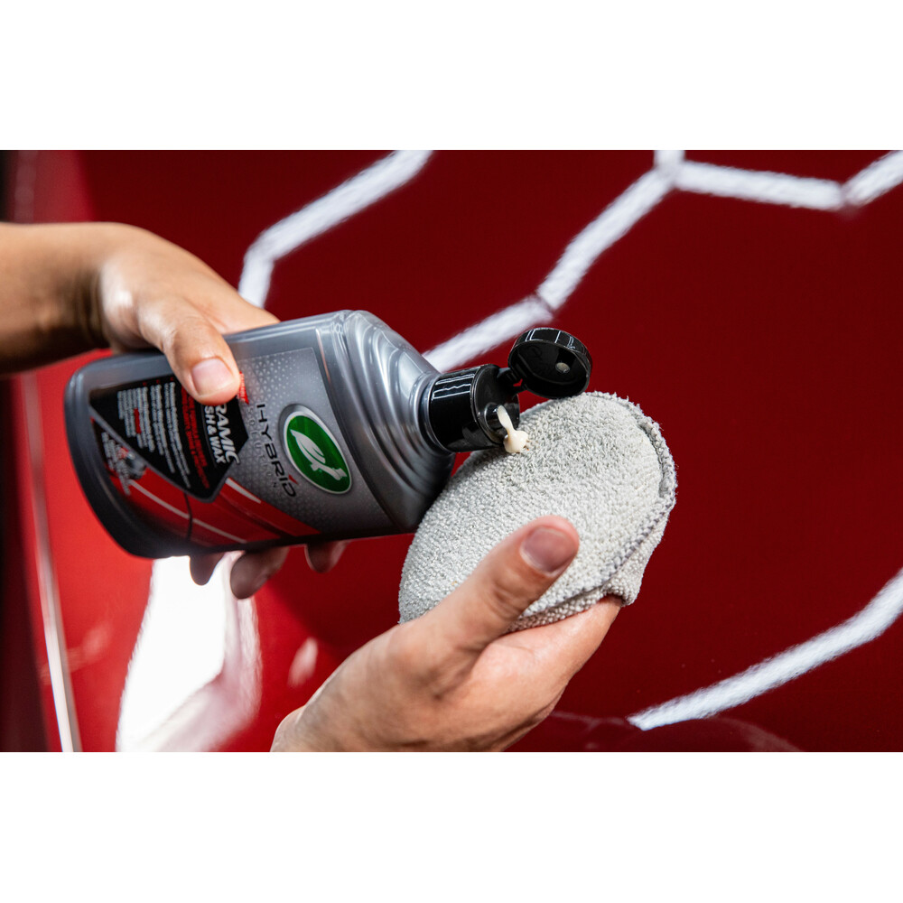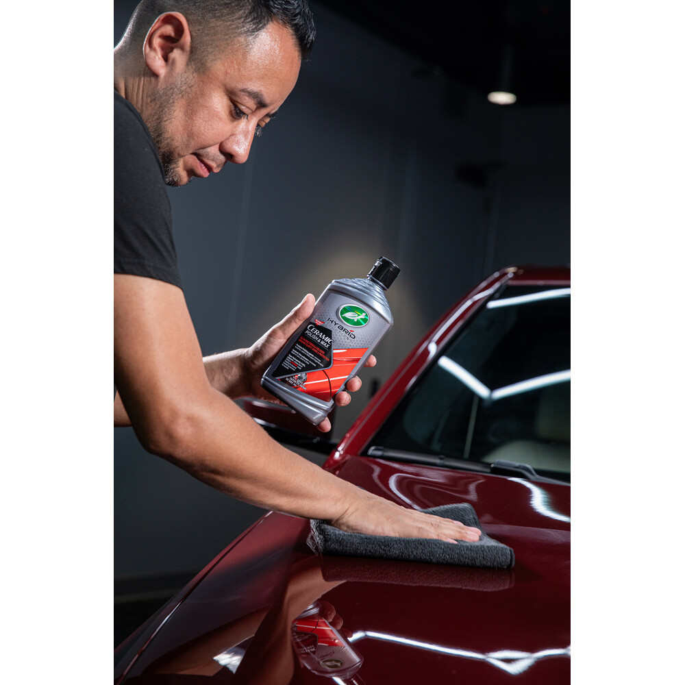 Turtle Wax Hybrid Solutions Ceramic Polish & Wax est une excellente alternative, unique et rapide aux systèmes traditionnels de correction des défauts de peinture en plusieurs applications. Ce produit est idéal pour lustrer, éliminer opacité, halos, rayures et éraflures de surface en un seul traitement, sans perdre trop de temps. Cette technologie innovante utilise des agents lustrants de précision en forme de plaquettes qui nettoient et éliminent les imperfections de la peinture, ainsi qu’une cire synthétique et des polymères super hydrophobes infusés de SiO2 pour une protection, une profondeur de couleur et une brillance maximales. Peut être appliqué à la main ou avec une lustreuse pour éliminer les micro-rayures, l'oxydation ou simplement l'opacité, pour une restauration extraordinaire de la peinture en une seule opération.