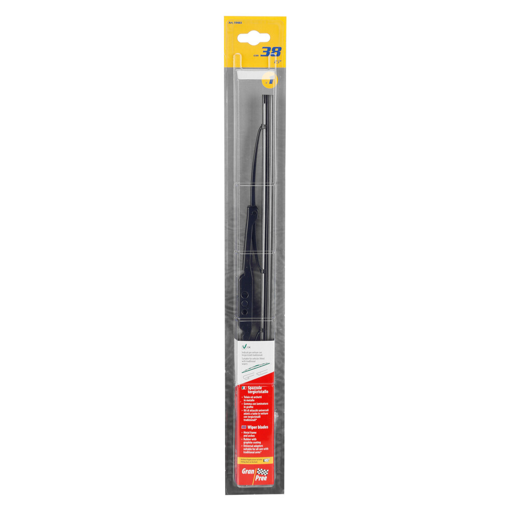 Telaio ed archetti in metallo. Gomma con laminatura in grafite. Kit di attacchi universali adatti a tutte le vetture con tergicristalli tradizionali