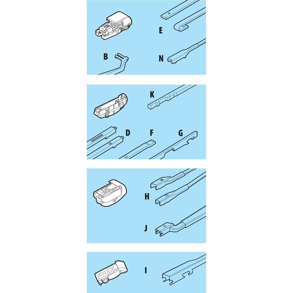 | Marca | Modello | Anno | Attacco Ant. | Misura guida | MisuraPasseggero | Attacco Posteriore | MisuraPosteriore | Spazzola Posteriore | Braccio Posteriore | Refill Posteriore | Kit |