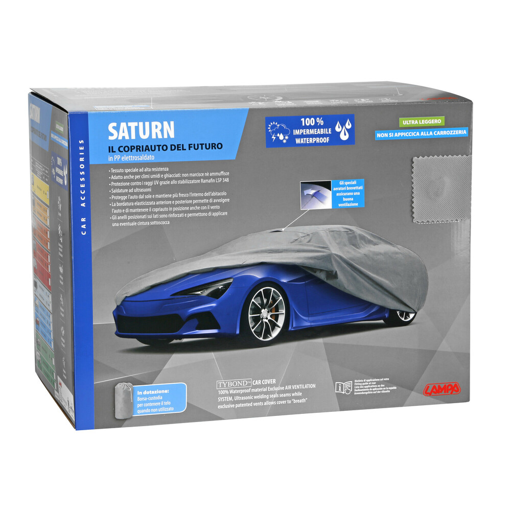 La bordatura elasticizzata permette di mantenere il copriauto in posizione anche con vento. Gli anelli posizionati sui lati sono rinforzati e permettono di applicare una eventuale cintura sottoscocca