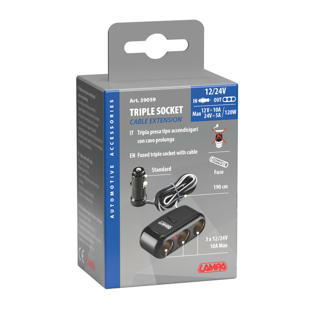 Cavo 200 cm, spinotto con fusibile. 10A max