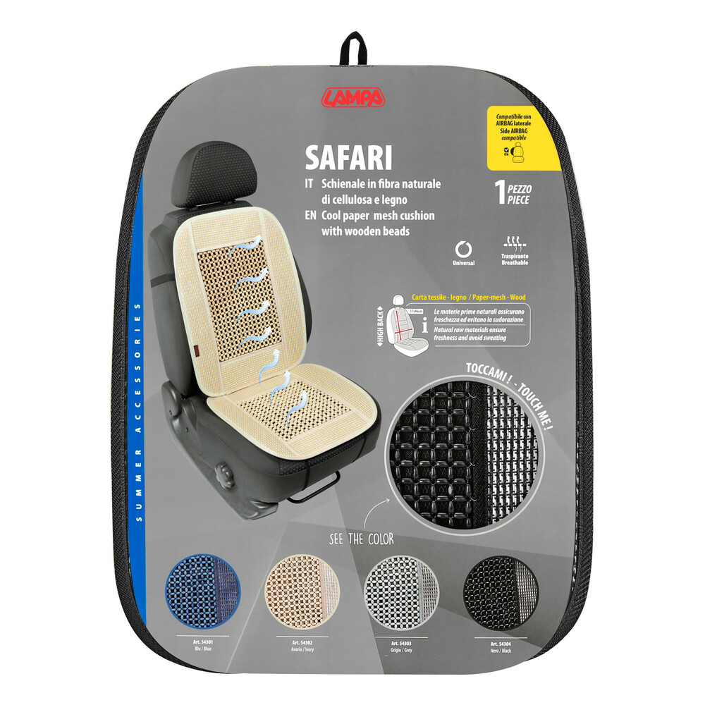 Il top degli schienali estivi perchè prodotto con materie prime naturali. Paglietta di cellulosa (carta) per il contorno e palline di legno che garantiscono il ricambio di aria tra corpo e sedile