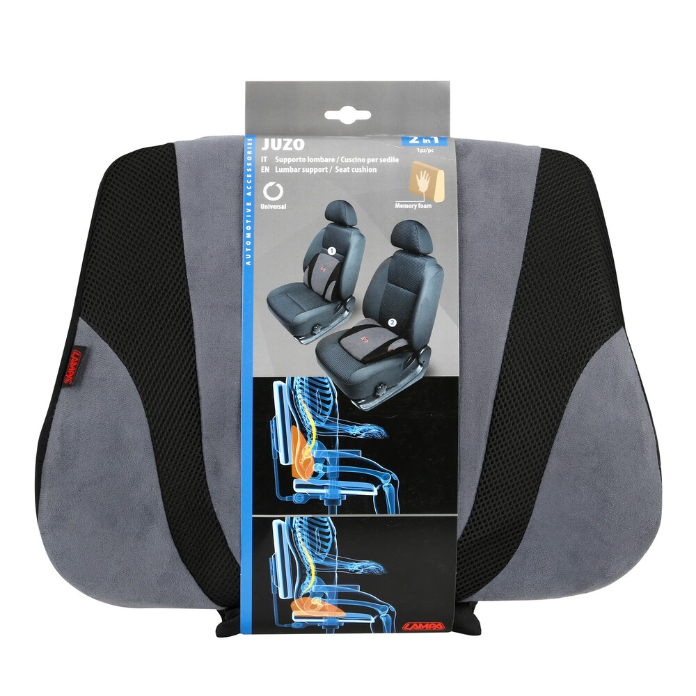 Posizionato sullo schienale è un ottimo supporto lombare e previene il mal di schiena. Imbottitura in gommaspugna con effetto memoria. Rivestimento in microfibra