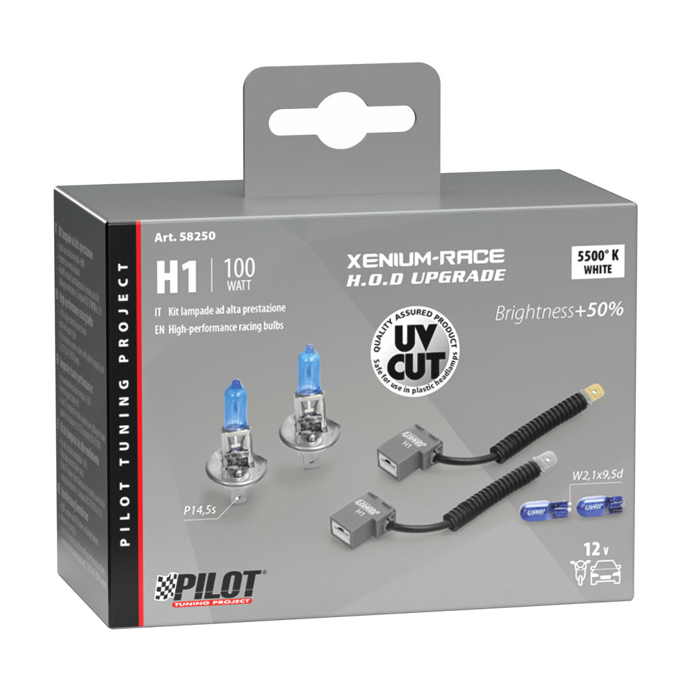Nuove confezioni “Bonus-Pack” contenenti: 2 lampadine H1 con portalampade in ceramica e kit cablaggio potenziato. In omaggio 2 lampadine W5W vetro H.I.D. blu