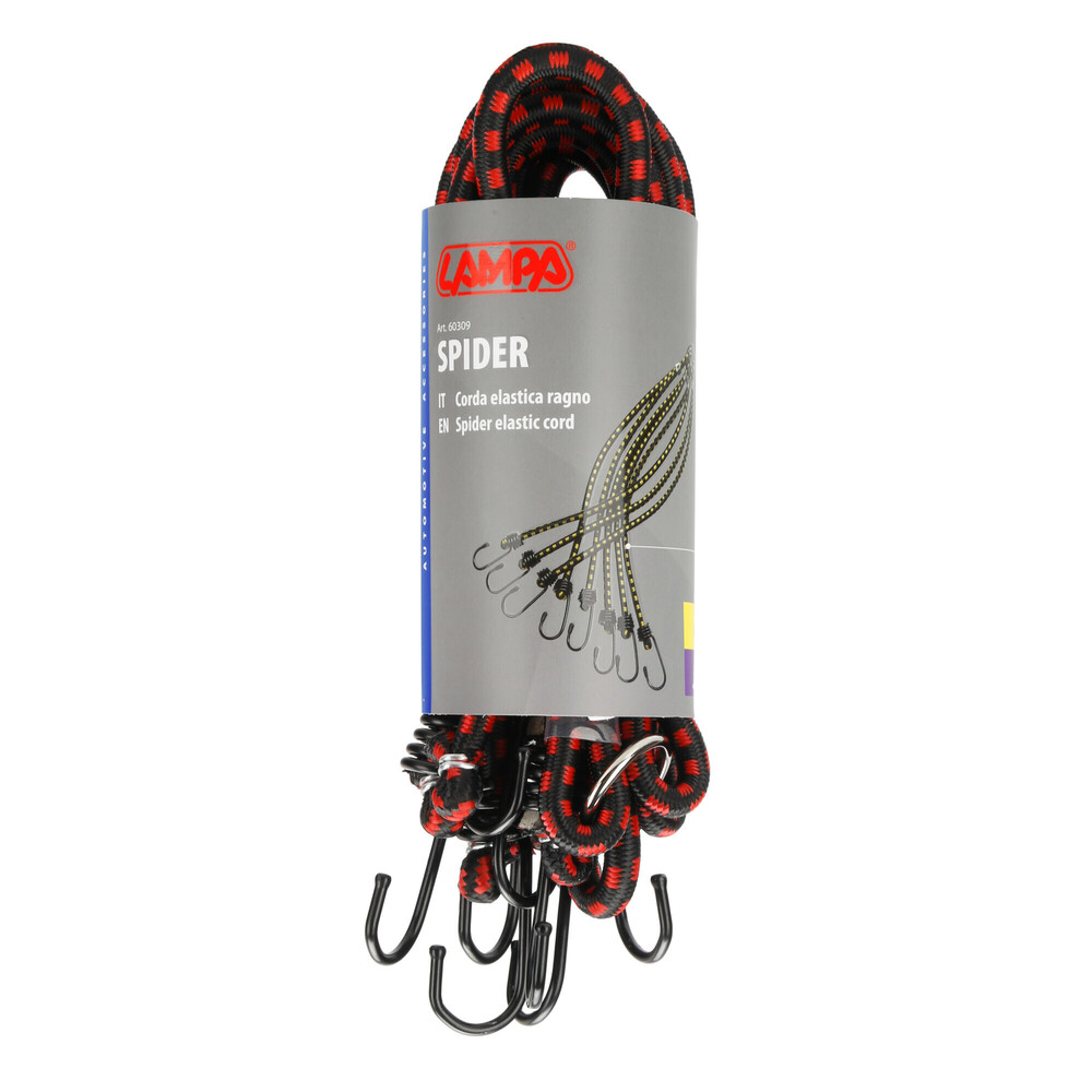 8 braccia da 40 cm con anello di raccordo. Ganci in acciaio temperato plastificato, con sigillo antigraffio e anti-rottura