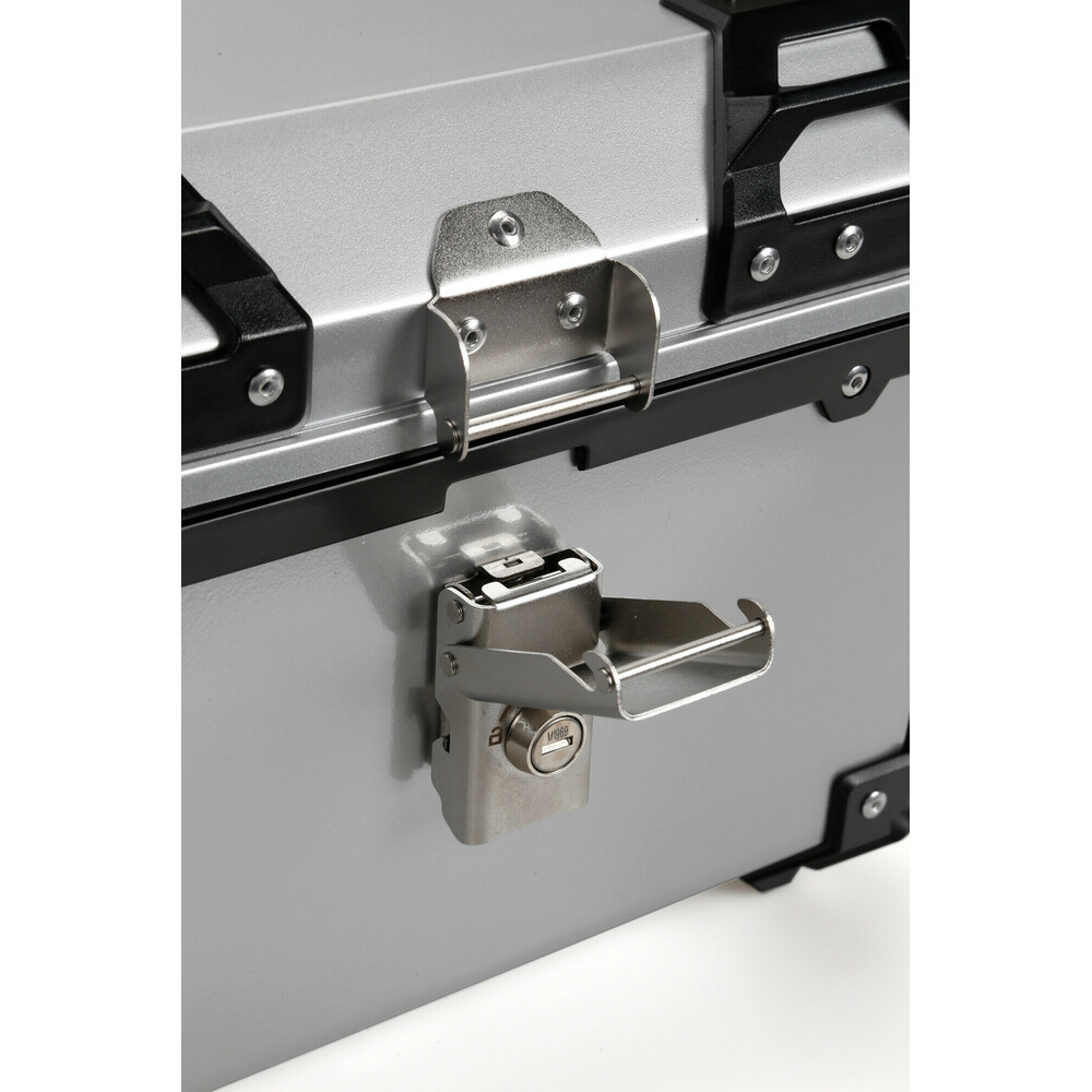 In materiale termoplastico. Completo di piastra e viti per il fissaggio. 2 chiavi in dotazione. Carico massimo 3 kg. Può contenere un casco integrale