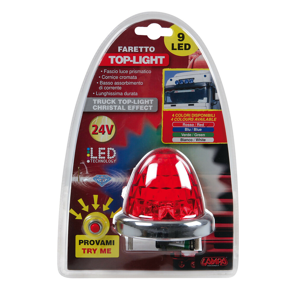 Fascio luce prismatico. Cornice cromata. Basso assorbimento di corrente. Lunghissima durata