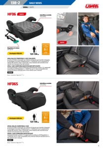 1 SEDILI | SEATS Imbottitura morbida Soft padding Imbottitura morbida Soft padding 125-150 cm 125-150 cm UN Regulation No.129/04 040082 Rialzo universale per bambini Universal baby car booster seat HF06 125-150 CM UN Regulation No.129/04 040082 Rialzo universale per bambini Universal baby car booster seat HF06S 125-150 CM HF06, RIALZO COMPATIBILE I-SIZE CON ISOFIX Cuscino di rialzo universale con sistema di ritenuta per bambini integrato. È omologato secondo il Regolamento n. 129/04 per l’uso in posizioni di seduta del veicolo i-Size e universali, come indicato dal costruttore del veicolo nel manuale d’uso del veicolo. HF06, I-SIZE COMPATIBLE BOOSTER SEAT WITH ISOFIX Universal booster cushion Enhanced Child Restraint System. It is approved according to UN Regulation n. 129/04 for use in i-Size compatible and universal vehicle manufacturer in the vehicle user’s manual. 55050 Busta + Cartoncino / Bag+Card n 6 HF06S, RIALZO COMPATIBILE I-SIZE Cuscino di rialzo universale con sistema di ritenuta per bambini integrato. È omologato secondo il Regolamento n. 129/04 per l’uso in posizioni di seduta del veicolo i-Size e universali, come indicato dal costruttore del veicolo nel manuale d’uso del veicolo. HF06S, I-SIZE COMPATIBLE BOOSTER SEAT Universal booster cushion. It is approved according to UN Regulation n. 129/04 for use in i-Size compatible and universal vehicle manufacturer in the vehicle user’s manual. 55051 Busta + Cartoncino / Bag+Card n 6 HF06S HF06 Omologato R129/04 Omologato R129/04 138-2 DAILY NEWS Regolatore di cintura Belt adjuster ISOFIX ISOFIX